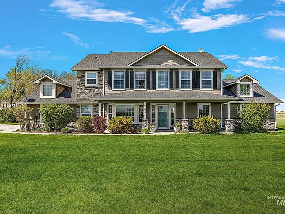Experience the charm of rural living with this beautifully maintained 2,634 sq ft home set on 10 irrigated acres. Whether you're looking for a quiet retreat or a place to grow your dreams, this property offers both comfort & versatility. The land is ideal for horse lovers or hobby farmer. Grow your own hay or use it as a cash crop. A spacious 36x36 shop/barn w/power features a large stall that could easily be converted into three, giving you flexible options for livestock or storage. A corral is already in place, ready for your animals. The home welcomes you with a classic country feel & modern upgrades. Enjoy your morning coffee on the front or back porch while taking in the birdsong and sweeping views. Inside, the main level hosts a generous primary bedroom & office, while three additional bedrooms & a bonus room are upstairs, perfect for family, or guests. The heart of the home is the large, open kitchen featuring granite countertops, an island, & beautifully refinished hardwood floors.