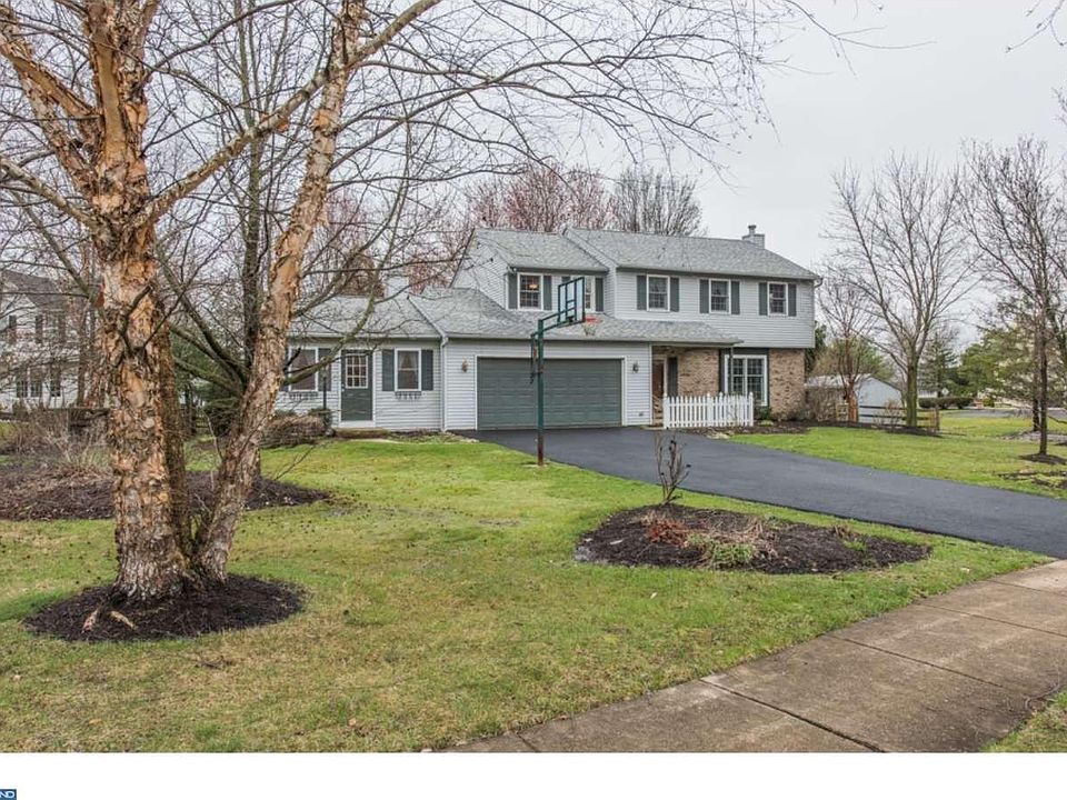 Set in a lovely community with wide streets for strolling and biking just a heartbeat from the Shops at Valley Square is a fabulous 4 Bedroom, 2.5 Bath home with great features including: a huge vaulted ceiling addition with its own entrance (possible in-law suite)!, crown molding, bright, spacious rooms, Living Rm, Dining Rm and Den with brick fireplace, upgraded baths and an eat-in kitchen with granite counter tops, pantry, breakfast bar, Bosch four burner gas stove and convection oven. Sliders take you to the fenced rear yard and spacious two tier deck overlooking the golf course. All the view and none of the upkeep since the large .53 acre corner lot backs to the 3rd hole of the Fairways. Flowering trees provide a dappled shade canopy while you are relaxing on the deck. The master bedroom features walk in closets, en-suite bath with glass shower and custom tile work. Lots of newer Anderson replacement windows and fresh paint help make this a move-in home. The addition, with it's separate entrance, vaulted ceiling, lots of recessed lighting, is currently used as an office with built in desks, counters and file storage along with a separate spacious conference room. With the easy removal of the built-ins it could make a wonderful play room, guest or in-law suite. A two-car garage and a huge double driveway; provides plenty of driveway space for play too. Blue Ribbon Central Bucks Schools and wonderful convenient location just a short drive to the entrance of the turnpike makes this home a great choice for commuters. Welcome Home!