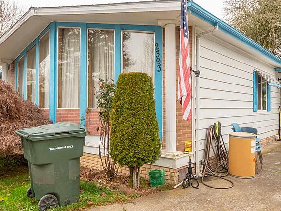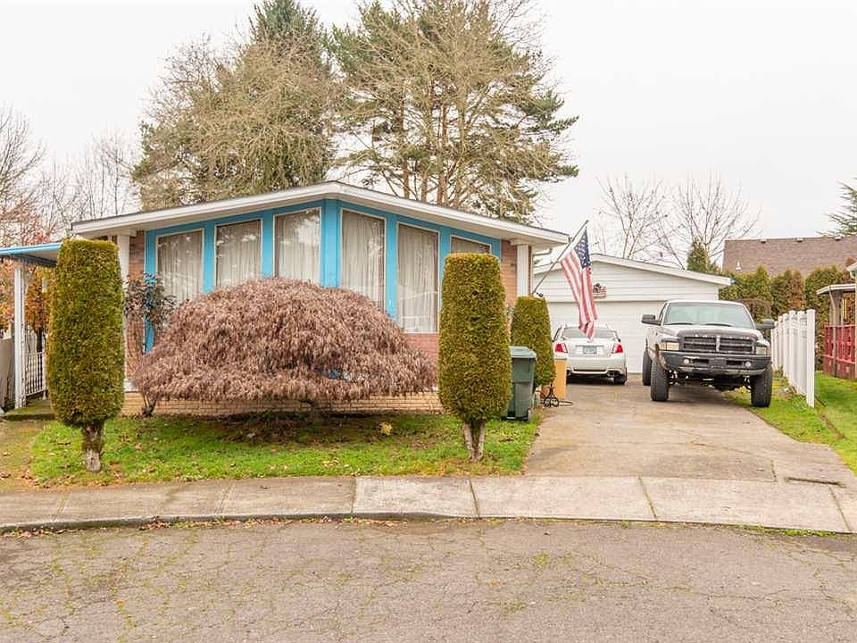 Accepted Offer with Contingencies. In a quiet cul-de-sac location on it's own land, this 2 bedroom, 2 bath home has both a living room & family room. The kitchen's rounded shape provides spaciousness and includes a breakfast bar. The master has an en suite bathroom with a soaking tub & separate shower, dual sinks, vanity space, linen storage, & a closet w/ built-ins. The laundry room has a sink & cabinet storage. Complete with a slider to the covered porch & patio area, and a detached double car garage w/ shelving & cabinet storage.