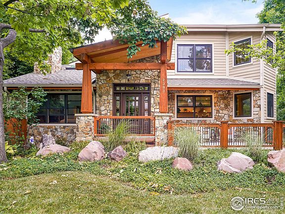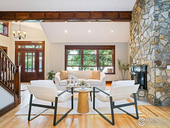 Sophisticated elegance reigns in this stunning North Boulder residence. An inviting, covered front porch sets the stage for leisurely outdoor relaxation with a view towards the park. Further inside, an open and airy layout unfolds w/ modern updates complemented by timeless design elements including wood trim and exposed wooden beams. A cozy floor-to-ceiling fireplace provides warmth and ambiance to a spacious living area. Peer over a breakfast bar w/ seating into an impressive kitchen showcasing stainless steel appliances and generous cabinetry. A dining area set by the kitchen is perfect for entertainment or family dinners. Escape to a pristine primary suite boasting a serene bath w/ a walk-in shower. Five additional bedrooms provide light-filled retreats w/ large windows. Great backyard w/multiple private sitting areas . A two-car attached garage offers additional storage and access to private office . Residents revel in a coveted locale w/ easy access to a nearby park.