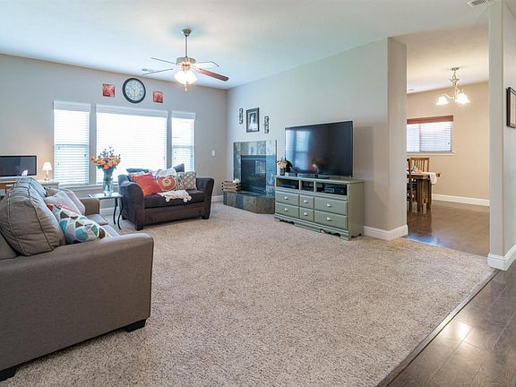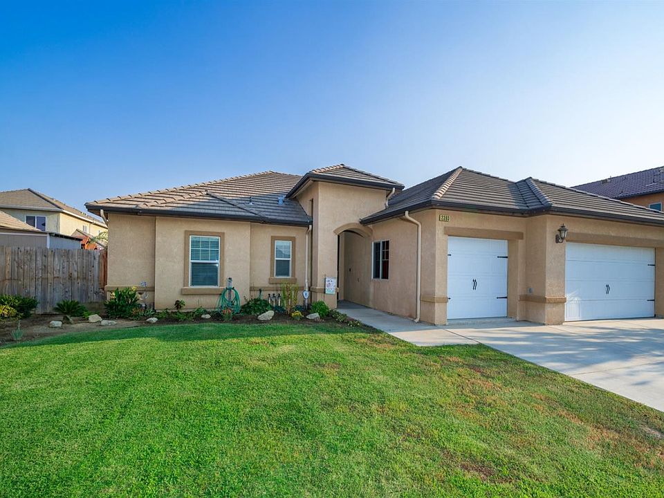 Beautiful open floor plan with tons of room for entertaining! The minute you enter you will immediately be impressed by the spacious great room with high ceilings and gorgeous backdrop of natural light through its wall of windows. This room opens up to the huge must see chef's kitchen that's perfect for all of your family and friends to join in and cook or just hang out. Kitchen features stainless steel appliances, tons of granite counter space-including large bar seating area, pantry & huge dining area that leads to large outdoor patio. Master retreat includes soaking tub w/ separate shower, dual sinks & walk-in closet. Home also features: warm decorator paint; canned lighting; ceiling fans; rich wood laminate floors. Outdoors you will find a professionally gated dog run on one of the two large cemented side yards, along with 3 car garage! Great family neighborhood in Sanger that is close to award-winning schools & easy access to highway 180. Hurry to see this beauty today!