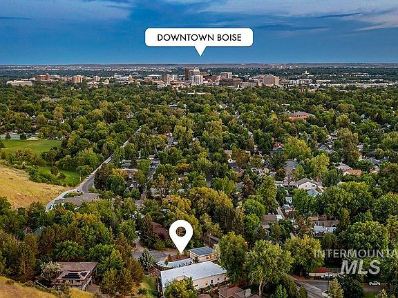 A luxurious modern homesite on half an acre that offers an artful setting in Boise's prized North End neighborhood! Nestled into the hillside just behind Camel's Back, this striking residence combines bold architecture, clean lines, and a deep connection to its landscape. Born in the 1920's Art Deco era, this residence has gracefully evolved to marry impressive scale with today's convenience; lending itself to be the ultimate entertainers' paradise. The interior embraces a minimalist aesthetic to great effect; with banks of steel-lined windows and a panorama of public living spaces designed to work around the grounds and maximize natural light. The kitchen recently underwent a magazine-worthy remodel (2023), including stunning ceiling-height cabinetry, sparkling marbled quartz countertops, and a premier Bosch® appliance package. The 4th bedroom on the lower level is currently staged as a bonus room.