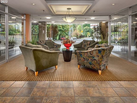 Enjoy your morning coffee from the deck of this rare find. Nestled at the foot of Washington Park with views of stately cedars and the condominium's manicured grounds and pool. Live the easy life with bus stop right out front. Saunter straight into the park or North a few blocks to Zupans & NW 23rd shopping, dining , Providence Park, MAC. Gated complex w/ elevator, assigned secure parking & 2 storage units. Walk score 93. Freshly painted with new carpets.