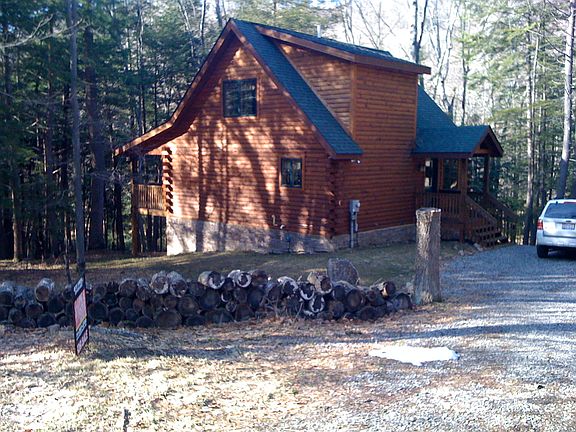Beautiful Mountaineer Log home in the Bear Creek Subdivision. This home sits feet away from a trout stream running in your front yard. The home has an open floorplan, master loft, hardwood floors not to mention the privacy and seclusion.