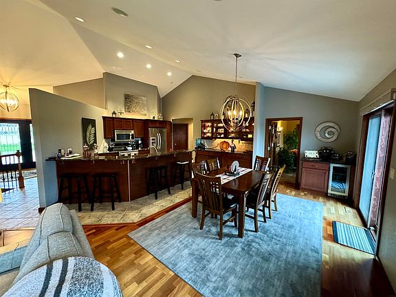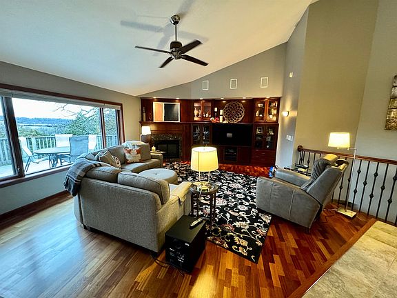 OPEN HOUSE TODAY! 9 - 11 a.m. Nestled in a private setting on 2 acres of land, this spacious 4-bedroom home offers both comfort and tranquility with surround sound on the main level. The open-concept floor plan seamlessly connects the living, dining, and kitchen areas, perfect for entertaining or family gatherings. A large office on the main floor provides an ideal space for working from home or additional flexibility. The home features 2.5 bathrooms, including a well-appointed master bath, and showcases stunning updates throughout, including elegant granite countertops in the kitchen. The living room is highlighted by a cozy fireplace, creating a warm and inviting atmosphere for relaxing or hosting guests. Enjoy the serenity of wooded views from nearly every room, adding to the peaceful, nature-filled ambiance. This home does offer a security system. The property is conveniently located with county taxes, offering a more affordable tax rate. With many updates already completed, this home is ready for you to move in and start making it your own. Within this home you will find in-floor heat in the primary bathroom, sunroom, and lower level. Don't miss the opportunity to live in this private, picturesque retreat!
