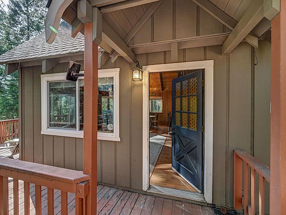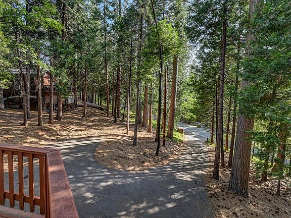 Welcome to Blue Lake Springs - A Classic Mountain Retreat with Exceptional Amenities. Nestled on a quiet cul-de-sac in the coveted Blue Lake Springs community, this charming chalet offers the perfect blend of comfort, privacy, and access to exclusive recreational amenities. Ownership includes privileges at the private Fly-In Acres Lake, the Snowflake Lodge Recreation Center, and even a members-only restaurant ideal for those seeking both relaxation and a strong sense of community. Set on a beautifully wooded lot with gentle topography, the property features a mild upslope driveway, making winter trips to Bear Valley Mountain Resort an easy escape for fresh powder days. Step inside and you're immediately greeted by soaring vaulted, open-beam ceilings and cathedral-style windows that frame tranquil forest views, bringing the beauty of the outdoors in. The main level boasts an open-concept floor plan with a spacious great room, a kitchen with bar seating, two bedrooms, and a remodeled bathroom. Upstairs, an open loft with a half bath serves perfectly as a bunk area or cozy flex space. Most windows were updated with energy-efficient double-pane vinyl windows, installed by a previous owner. For comfort year-round, the home features a wood-burning stove and central propane heating, easily managed by a Nest thermostat. For outdoor enthusiasts, the property is just minutes from the prestigious Sequoia Woods Country Club, offering a private 18-hole golf course and fine dining, which is open to the public. And for all your gear, kayaks, paddle boards, skis, bikes, and more. A spacious concrete basement provides ample storage for every mountain-season adventure. This is more than just a home; it's your year-round base camp for mountain living. New leach field has been installed.