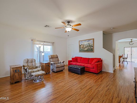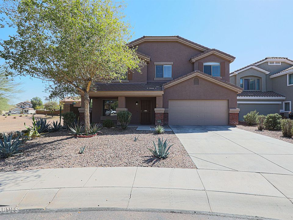 Look no further for an amazing opportunity! Come and see this fantastic 4 beds, 2.5 baths property now on the market! Great location with schools nearby, featuring low maintenance desert front and back yards with multiple citrus trees, leased solar panels for reduced energy costs, and a tandem 3 car garage with built-in garage cabinets. Inside you will find spacious dining & living areas w/ wood & tile downstairs and carpet upstairs. North facing home offers tons of natural light, dual pane windows w/ blinds, and all-white interior paint. The primary bedroom boasts an on-suite w/ tub and shower combo, and a walk-in closet for all your belongings. Stop searching and start calling. Schedule a showing today!