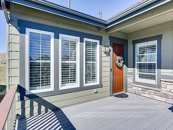This GORGEOUS Craftsman style Ranch home built in 2018 is a dream come true located on a private street in Tallyns Reach! No need to wait months for a new home when this immaculate home is ready now! Be welcomed to a quiet cul-de-sac community that backs up to open space and enjoy the incredible mountain views from the oversized TREX front deck. Upon entering the front door, you will be flooded with natural light and tall ceilings. The Entertaining Kitchen is complete with a large island that sits 4-6 and also has a large eat-in area all open to the family room. Enjoy relaxing in this family room that has large windows overlooking the private backyard complete with gas fireplace and plantation shutters. Master Bedroom is located on other side of the floorplan to create a true owners suite. Enter a hallway that leads you to a huge bathroom with double vanities and makeup area, large soaking tub separate from shower, and a massive closet. An attached 2 car garage includes above head storage solutions and epoxy coating flooring. Take a walk down the open staircase and be awed by the finished basement that has 10 ft ceilings, additional bedrooms, a full bathroom, and a massive entertaining space that could be used as a theatre, family game room, exercise space, or home office! The basement also offers a large unfinished storage room. Backyard is home to a second LARGE TREX deck (is plumbed for gas for your BBQ) that is partially covered, has privacy and provides shade and relief from the hot summer afternoons! This home does not disappoint and has all new paint, new modern farmhouse light fixtures, plantation shutters throughout, 3 yr old SS kitchen appliances (Refrigerator included), wood floors on main floor, and pristine carpeting in the lower level. Great location, CCSD. Tallyns Reach Community also includes access to Pool, tennis courts, clubhouse, and playground. With maintenance free landscaping, you'll never need to cut your grass or shovel snow again!!