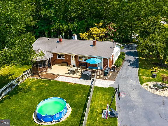 Adorable rambler in the country, away from the city, but close to shopping and an easy commute to the Pax River Base. This beautiful 3 bedrooms 2 bathrooms brick home has an updated eat-in kitchen with stainless steel appliances, granite countertops and lots of cabinet space. Spacious living room with hardwood floors. Large master bedroom with attached remodeled master bath with separate shower and an elegant clawfoot tub. Huge 24x24 detached garage with workspace, great for all your toys. You can enjoy the peaceful setting outdoors on your large deck, screened in gazebo and koi pond with fountain. A little over 1 acre lot with circle driveway. Home also features a cellar space great for storage. New metal roof put in on July 2020. Home warranty included.