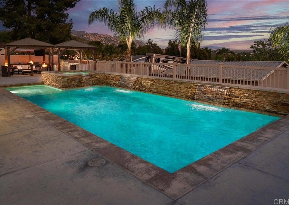Welcome to 23937 Gymkhana, a stunning property nestled in the serene San Diego Country Estates. This exquisite home has 3 bedrooms, 2 bathrooms, and sits on a spacious .66 acre corner lot. The house features owned solar with 48 panels, fully automated smart home controls, and ADT security for peace of mind. Fully renovated in 2019, this home showcases a gourmet kitchen with quartz countertops and a reverse osmosis system at the sink, luxury laminate flooring, and new windows throughout. Step outside to enjoy the custom pool installed in 2021, an outdoor kitchen with fire pits, and turf in both the front and back yards. Additional features include a brand-new HVAC system, attic fan, automatic shades in every room, built-in surround sound Dolby Atmos system with Martian Logan speakers in the living room, a Well with a 1500-gallon holding tank, and an owned water softening system. The property also offers full trailer/RV hookups, a rear entrance with an automatic gate and keypad, and an insulated 25X25 metal shed, supplied with both A/C and heat, that currently serves as a gym but can be used as a workshop with a 125v subpanel. For storage needs, there is an additional large, covered outbuilding and shed, providing storage for all toys, boats or vehicles. Don't miss out on this exceptional home offering luxury, comfort, and modern conveniences in a picturesque setting in San Diego county!