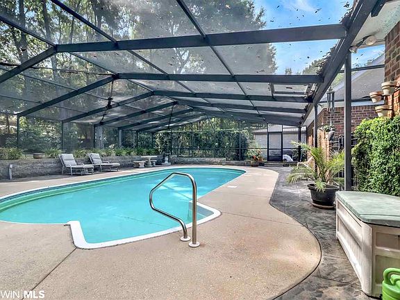 Montrose Woods is one of the most desirable neighborhoods, conveniently nestled in between Fairhope and Daphne. This non thru street is the only street in the neighborhood; established, wooded and small. A new roof was completed August, 2020, including a Fortified Bronze certificate, so you can enjoy the discounts on your homeowner's insurance for years to come. This home has been loved, maintained, updated and well taken care of. With the caged pool, (cage is 52'X41'), fountain, mature landscaping, trees and privacy, this home will be your haven! Cozy up to the fireplace in the open and bright living room with gorgeous wood floors and detailed crown molding. This home is perfect for entertaining with a remodeled kitchen and island, all open to the living room and dining area. When you want to play outdoors, your guests will love the back covered porch, the New Orleans style courtyard and the screened in swimming pool. The master bedroom is huge, yet intimate with is bay window seating area. Between the guest bedrooms is a highly desired Jack & Jill bathroom with a totally remodeled walk-in shower. This home is a must see!