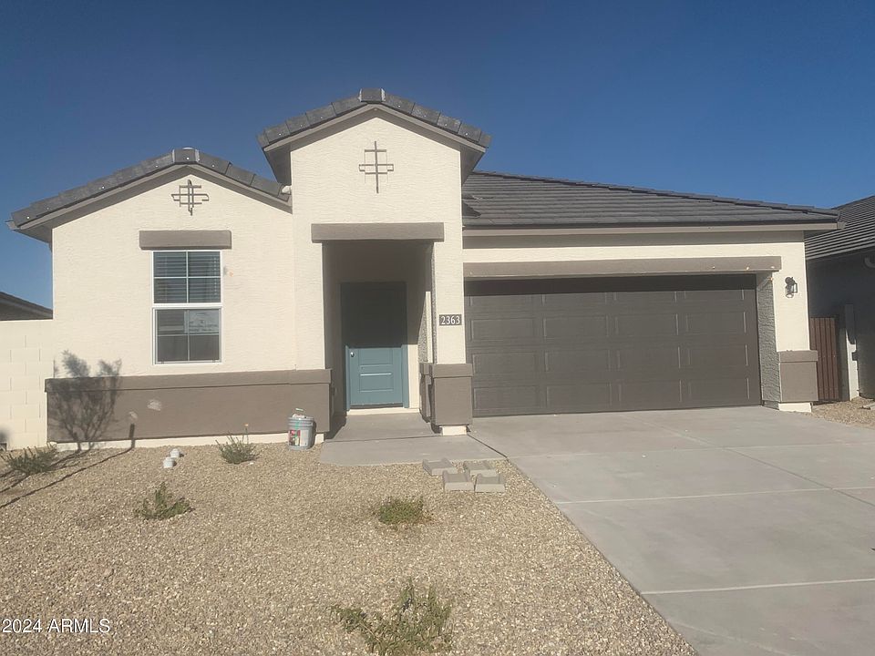 Brand new construction, March 2024 completion. See our exciting new community located in Buckeye of Desert Moon Estates. Partial view fencing and DOUBLE GATE DOUBLE GATE DOUBLE GATE!! This popular Abbot floor plan features 4 bedrooms and 2 baths. White shaker style cabinets in kitchen and baths. Designer 18 x 18 in tile everywhere but bedrooms, upgrade carpet in bedrooms only. Gourmet kitchen has stainless steel appliances, range/oven, microwave and dishwasher, single basin sink with high arc faucet. Quartz kitchen counter tops! Window blinds throughout with verticals on Sliding Glass Door. Stop by to see our newest plan! Photos represent other models of this plan.