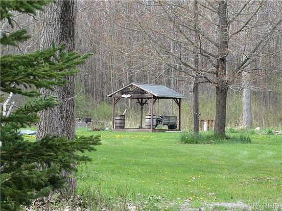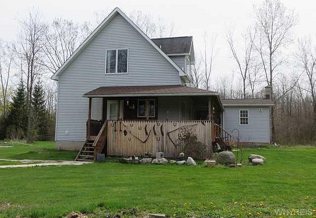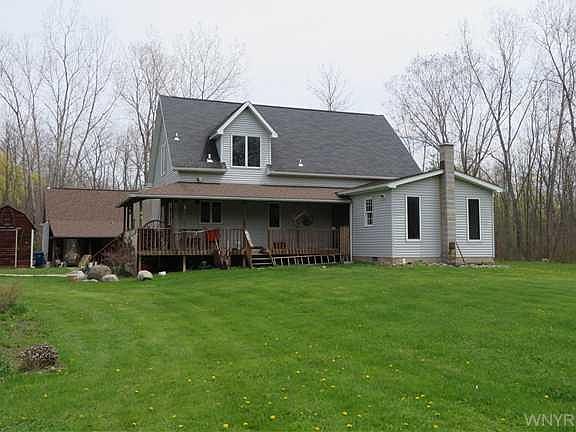 Country home on 8 secluded acres,hunters paradise.Built in 1999(2 X 6 construction), 1894 sq feet offers 2 story great room,wall of reclaimed barn wood, rear family rm w/woodstove,cathedral ceiling,slider to wrap around porch,lots of windows to bring the outdoors in! Eat-in kitchen w/ shaker style cabinets,c/t floors,1st floor laundry,bedroom,huge full bath. Loft area will WOW you(could be 2 bdrms), 2 Armoires stay. Walls are primed,ready for your decor. Mostly wooded acreage, large cleared area holds Pavillion, pond(ready for waterfall),carport,out bldg.,shed, gardens.