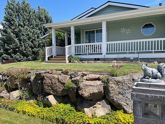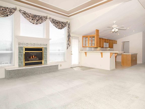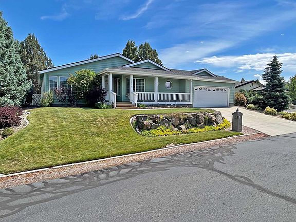 Price Reduced! Appraised at $545,000. Wake up to Cascade Mountains alpenglow views; wind down with beautiful sunsets. Unique large triple wide one owner, pet free single level home in gated pride of ownership Mountain View Park. This home is not for rent. Sit on your porch & enjoy an unequalled view of July 4 fireworks Pilot Butte. Large rooms: Living room, Kitchen, Family Room, Gas Fireplace, & all bedrooms have walk in closets. Office/hobby nook. Island Kitchen with smooth top range, hot water dispenser & large step-in pantry. Utility room with sink & cabinets. Oversized 600 sq. ft. garage. Very private back yard; patio & small pond. Primary bedroom offers a large ensuite, double sinks, oversized walk in closet, enclosed toilet, soaking tub & shower. Roof, skylight, ice shield, vents, flashings, & edge metal replaced in 2016. Park offers a community swimming pool, Pickleball court, street snow clearing, & front yard mowing included in your low $85/month HOA. RV parking (extra fee)