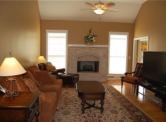 All brick, split bedrm plan with soaring ceilings and gleaming hardwood floors. Basement is finished with a rec rm with loads of cabinets, granite top, gas log FP, and extra room currently being used for a 4th bedroom*Huge full bathrm with walk-in closet