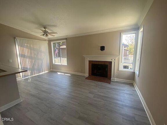 This upper-level has NEW flooring and Paint, 2-bedroom, 1 1/4-bath, condo with a bright open floor plan, including a spacious living room with high vaulted ceilings, crown molding and a welcoming fireplace. The kitchen opens to living space with bar seating, and dining area. The generous size primary bedroom offers a private vanity area, walk-in closet, high vaulted ceilings, and sliding door patio access. Step outside to a large wrap-around deck perfect for BBQ's and entertaining guests. The roomy 2nd bedroom has a generous closet with sliding doors and direct access to the Bathroom. You can enter the bathroom from the 2nd bedroom if desired, and also from the hallway. The laundry area is conveniently located in the guest bath area (washer/dryer are included). HOA covers earthquake insurance, water, trash, sewer, and exterior building + grounds maintenance, dog park, pool and spa. Summer days will feel like vacation at the community's sparkling pool + spa with outdoor shower and changing rooms. There is also a large park which is steps away from the community, ideal for a leisure walk, play area for kids, or family picnics. Take a leisurely stroll to nearby coffee shops, THE LAKES, where you can indulge in shopping, dining, and entertainment options galore. And with easy access to the 101, commuting to work or exploring all that Thousand Oaks has to offer