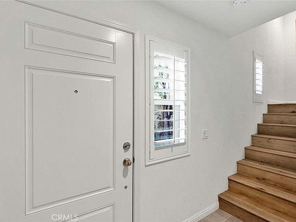 Welcome to this stunning 2019 tri-level gem nestled within the gated Tapestry Walk community. Positioned as a corner unit, this residence ensures a unique sense of privacy with only one shared wall and abundant natural lighting, creating a bright and airy atmosphere throughout. Upon entering through the front door, you'll be welcomed by a spacious entry hall, complete with a convenient closet. The bottom floor boasts a two-car tandem garage, equipped with a tankless water heater and water softener for modern comfort and efficiency. The main floor embraces an open concept, seamlessly combining the living and dining areas. The chef's delight kitchen features a center island, quartz counters, shaker cabinets, Energy Star Whirlpool appliances, a side-by-side Samsung fridge, and is pre-wired for pendant lighting. Sliding glass doors with custom remote-controlled shades lead to a covered balcony, providing an ideal spot to relish the pool view. Upgraded wide plank wood vinyl floors grace the living spaces throughout, while tile adorns the bathrooms on the upper level. This floor hosts a spacious primary bedroom with an extra-large walk-in closet, dual sink vanity with cultured marble countertop, and a walk-in shower with sliding glass doors. The guest bedroom also features an ensuite bathroom with a walk-in shower. Convenience is paramount with a full-size side-by-side washer and dryer conveniently located in the upstairs hallway. Enhanced by dual pane windows and plantation shutters, this residence exudes elegance while ensuring energy efficiency throughout. In close proximity to the Outlets of Orange, Platinum Triangle, The Grove, Angels Stadium, Honda Center, Disneyland, UCI Medical Center, and CHOC, the location offers unparalleled convenience. Commuting is a breeze with easy access to the 5, 22, 55, and 57 freeways. The Tapestry Walk community presents a range of amenities, including a pool, BBQ area, small dog park, fire pit area with expansive seating, and resident electric charging stations. This property isn't just a home; it's a lifestyle, seamlessly blending modern comfort with convenience in an ideal Southern California location.