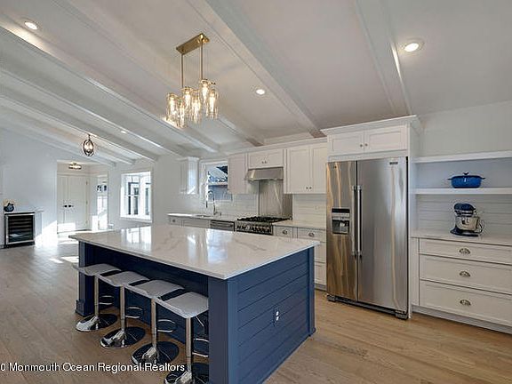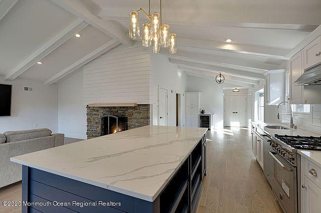 Clean lines, freshly renovated mid-century modern ranch includes a guest/in-law/au-pair cottage. The home is unique in so many ways. Impeccable attention to style, this one level living home blends coastal elegance with classic design. Hardwood floors through main home, new baths and kitchen. Manasquan Shores section of Wall offers proximity to Manasquan River, optional neighborhood association with river access to launch a boat or kayak. Neighborhood association throws get togethers for all ages. Located on a dead-end street...this is the one. Guest cottage boasts bedroom, living room and kitchenette. Gas hook up for stove still in place. Zip code is actually 08736, front door to be replaced.