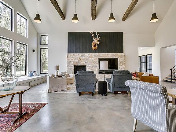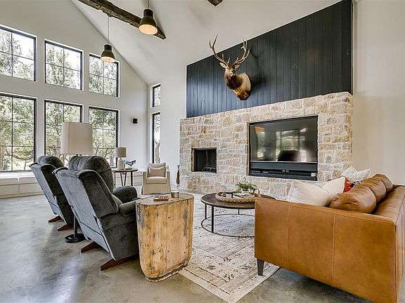 Hill Country meets California in this exquisite Contemporary Farmhouse. This is the property to get away from the City. Shut the gate and have a private retreat or a permanent residence. The home has a wide open concept with tall windows to enjoy views of the land and wildlife. The master bedroom and bath has it's own private wing for privacy. The master walk-in closet has its own seating area. The home will sleep 16 people comfortably. The kitchen is very modern with high-end built in appliances. The Great Room has a tall vaulted ceiling with a beautiful fireplace as the focal point. The home boasts 4 bedrooms,two laundry areas, 4 full baths & 2 half baths. A 1200 sq. ft. shop will hold all your equipment.