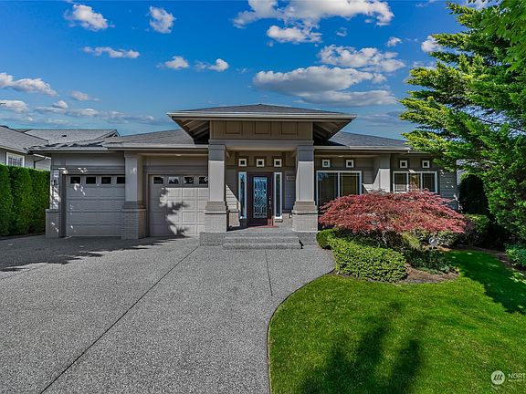 Trilogy Trifecta! Breathtaking Views. Contemporary home. A+ Location. You can have it all in this gorgeous Cedar model home sited on a quiet cul-de-sac designed to showcase its sweeping Cascade Mountain, Snoqualmie Valley and big sky views. Sprawling 2,410 asf single story home w/a huge light filled great room with large transom windows that frame the gorgeous views. Expansive kitchen with slab counters and top shelf SS appliances. Stunning primary en-suite w/a soaking tub & step in shower. Handsome home office + an extra room for 2nd office/hobby/theater/or 3rd bdrm potential. 2nd Primary w/ensuite bath. Pristine hardwood floors flow thru-out. Relax and entertain on the oversized high quality composite deck with unobstructed views. 55+