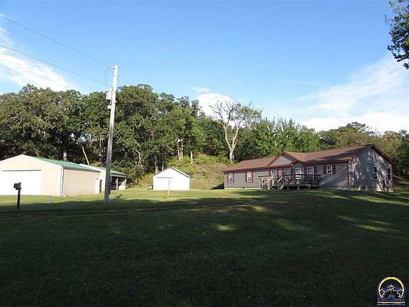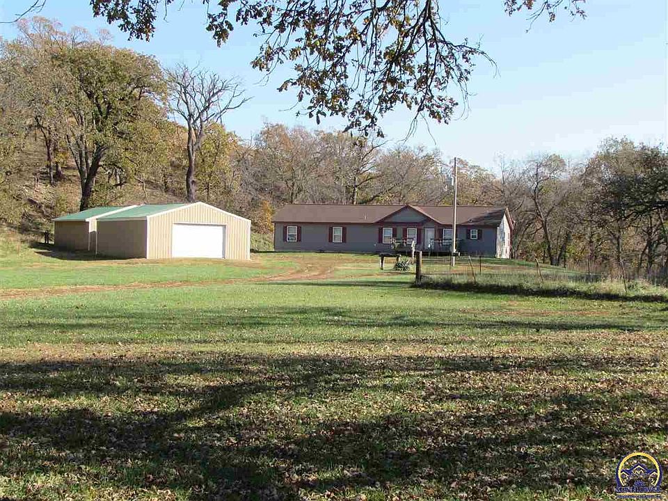 Buyer failed to meet VA eligibility requirements. Their disappointment is your clients opportunity! Secluded 5.9 M/L acre Flint Hills enclave 15 minutes south of I-70. Property sits at the base of a large tree covered hillside with a spring fed babbling brook / creek running past the deck and house. Oak and walnut grove surround the house and outbuildings. Built in 2007, 2320 sf, 4 bedroom, 3 bath engineered manuf. home on a concrete crawl. Formal dining room, bkfast nook & eating bar. 3 nice outbuildings!
