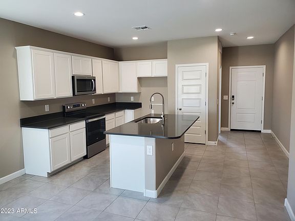 Come see our exciting new community Desert Moon Estates. This popular Abbot floor plan features 4 bedrooms and 2 bathrooms, White shaker style Cabinets, 18x18 inch tile through main living areas, upgrade carpet in bedrooms only. Quartz kitchen counter tops. Gourmet kitchen has stainless steel appliances, range/oven, microwave and dishwasher. Window blinds throughout with verticals on Sliding Glass Door. Stop by to see our new plan! Pictures represent various model homes.