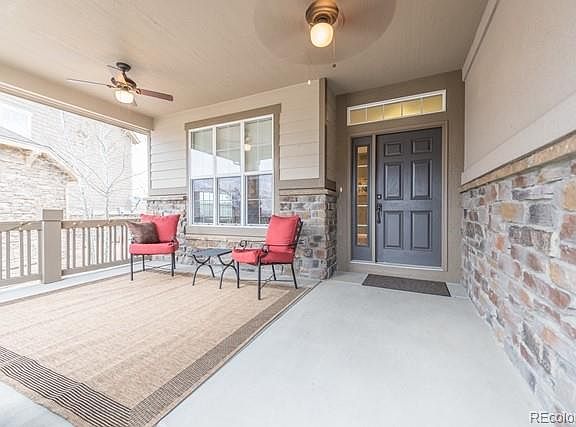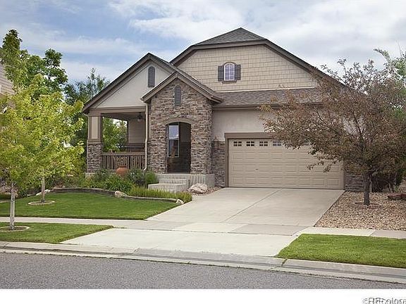 Home Warranty comes with this Ranch Style Home. This beautiful Open Floor Plan home as a small backyard with patio and gate for easy access to the walking paths and park. This is a low maintenance home. Quick access to E-470. Kitchen and Great Room Combination makes this home perfect for entertaining. Wood floors throughout Dining Room, Kitchen, and Great Room. Granite countertops, five-piece master bath, and walk-in Master Closet. The two car finished garage and the full open unfinished basement provides plenty of room for storage and flex space. Entrance to the basement is finished. The roof was replaced summer 2015.