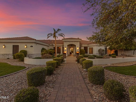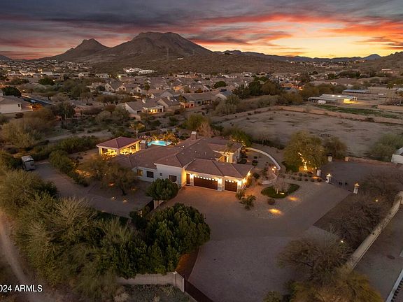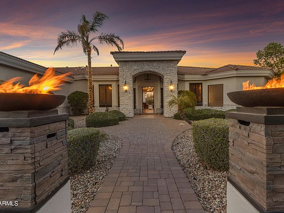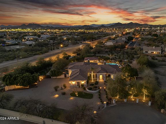 Nestled in a secluded gated enclave at the end of a tranquil cul-de-sac, over an acre of land, with grand paver driveway & stunning MOUNTAIN VIEWS that set the stage for luxury & serenity. Interior is filled w/ natural light, 14-foot ceilings, expansive great room, dining room, living room, 5 beds, office w/ closet (opt 6th bed), robust security camera system, speakers throughout home & 3 multi-pane sliding glass walls that seamlessly merge indoor & outdoor living spaces. Chef's kitchen, quartz countertops, built-in espresso machine, lavish owner's suite, generously sized bedrooms, Jack & Jill bathrooms & walk-in closets. Backyard sanctuary w/ pool, waterfall, misters, turf, ramada w/ fireplace, outdoor kitchen w/ dedicated gas line, TV & automatic roll-down shades. Relish in the epitome of luxury living with this captivating residence. Designed to evoke the ambiance of a lavish resort, every corner of this home exudes sophistication and tranquility. The thoughtfully crafted floor plan creates distinct, private spaces while accommodating all your needs with ease. Whether you seek relaxation or entertainment, this home offers flexible areas to suit your every whim. Don't miss the chance to experience your dream home! *Furniture/Furnishings available for sale, on separate bill of sale.