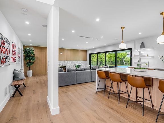 Offered fully furnished, this long or short term rental property (3 month min) offers everything desired in a luxury rental. A perfectly reimagined mid-century architectural find, found in the loveliest of neighborhoods, and appropriately situated in a peaceful cul-de-sac. Completely remodeled, yet retaining all the character and authentic feel, so difficult to find in new construction! With gracious and expansive curb appeal, and inviting front porch, this home does not disappoint, leading you into a beautifully appointed entry, with a spacious yet cozy office to your left, and the true heart of the home, the welcoming kitchen and family room, complete with original fireplace and tile. Designed for entertaining, this home features a dining room true to period with informal sitting area. All the main living areas feature sliders, opening out into the spectacular, ultra private backyard oasis, complete with sparkling pool, basketball court, fire pit area, outdoor kitchen and seating, with significant outdoor lounging and dining areas. No unchecked boxes here, this is a true family home with all of your entertainment needs exceeded.