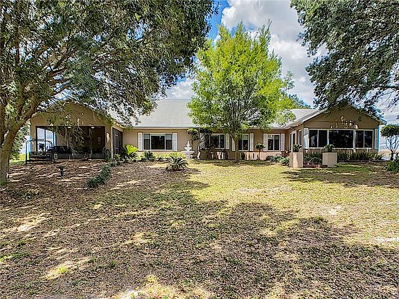 Your private retreat in the quaint town on Harrison Chain of Lakes - lakeside Florida lifestyle. Pass the town market, waterfront grill & authentic German bakery down the tree lined road to the entrance of the property. This agricultural & equestrian setting is just the right size for the smaller rancher + room to grow on over 10 dry acres with pond totally 30+acres. Adorable 4 stall barn, feeding station, and a pet parlor for smaller fury family members - once used as a business. Room to roam in a fenced paddock. Enjoy sunsets behind the plains from the screened porch as animals graze in the field near the large fish pond. Huge workshop & additional 60 ft storage for the hobbyist. Step inside the Builder's home to find it meticulously planned for entertaining and to stand the test of time. The open and bright home welcomes you with soaring 26 foot tongue and groove ceilings and a crackling fireplace in 1 of the home's 2 living spaces. The loft offers picturesque views with endless possibilities + the stunning gourmet kitchen will excite the chef of the home. Find even more stunning property views from the Sun Room or retreat to 1 of the 2 Master Suites. For the practical homeowner, incredible insulation, ultra-quiet, as walls are poured concrete + the home is wheelchair accessible throughout. Amazingly, this paradise is located 6 miles from the Turnpike between Winter Garden and Wildwood + nearby top rated Mission Inn golf & spa. Take the 3D Virtual Tour of this bargain property.