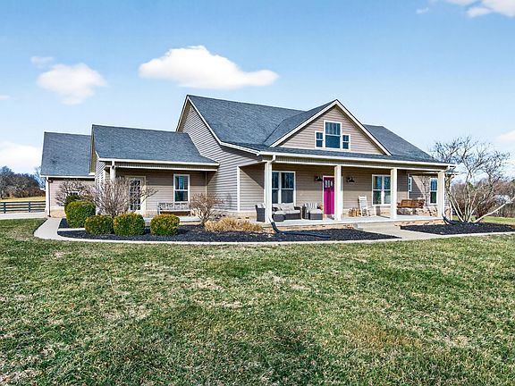 An exceptional offering of refined country living, this stunning 11-acre estate blends privacy, elegance, and convenience—just 15 minutes to ever growing Hamburg Shopping Center! And just six miles to downtown Winchester! Thoughtfully updated throughout, this beautifully appointed ranch-style residence delivers timeless design and modern luxury at every turn. The light-filled, open floor plan showcases all new flooring, fresh designer paint, and extensive upgrades throughout the home. At the heart of the home, the gourmet kitchen is both striking and functional, featuring an expansive statement island, stone countertops, custom cabinetry, double ovens, and a gas cooktop—ideal for both elevated entertaining and everyday living. A butler's pantry and laundry room provide additional prep space and storage. The great room exudes warmth and sophistication with rich hardwood flooring, a gas fireplace, and custom built-ins. The primary suite is a true retreat, offering a spa-inspired bath with a soaking tub, an impressive tiled shower, and a generous walk-in closet. Two additional guest suites share a beautifully designed Jack-and-Jill bath. Additional living space includes a 400-square-foot bonus room above the three-car garage, which is the 4th bedroom! Expansive unfinished walk-up attic conveniently located off the kitchen—presenting exceptional potential for future customization. Outdoors, the home unfolds into a private sanctuary. Enjoy tranquil countryside views from the front porch swing, entertain on the covered rear patio, or unwind beside the in-ground saltwater pool, creating an idyllic backdrop for both relaxation and gatherings. A rare opportunity to own a luxurious, turnkey property offering serene acreage, upscale finishes, and unmatched proximity to town.