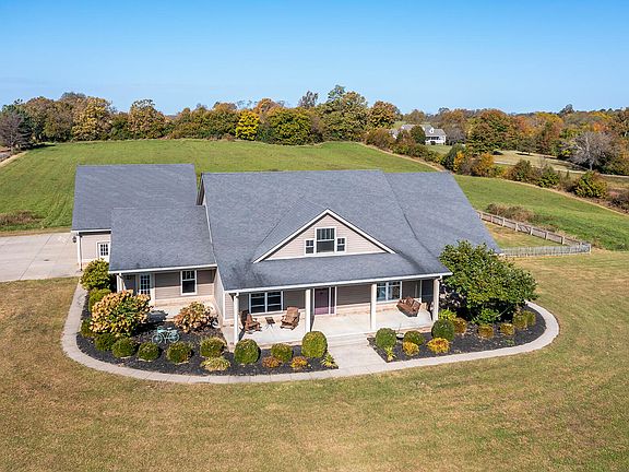 Simply the best of both worlds! Serene, picturesque country living on 11 acres just minutes from Lexington and Winchester. This beautiful ranch style home offers an open floor plan, gourmet eat-in kitchen w/ expansive island, stone countertops, custom cabinets, double ovens & gas cooktop. There is also a butler's pantry/laundry room that provides additional storage & prep space & a mudroom with a separate dedicated entrance. The great room boasts beautiful hardwood floors & gas fireplace flanked by custom built-ins. The spa like primary suite has a large walk-in closet, soaking tub & impressive tile shower. There are two additional spacious guest rooms w/ Jack n Jill bath. Don't miss the additional 400 sq ft bonus room above the 3 car garage & check out the expansive unfinished walk-up attic space just off the kitchen. Peaceful country views are yours to enjoy from the front porch swing to the covered back patio. Schedule your private tour today.