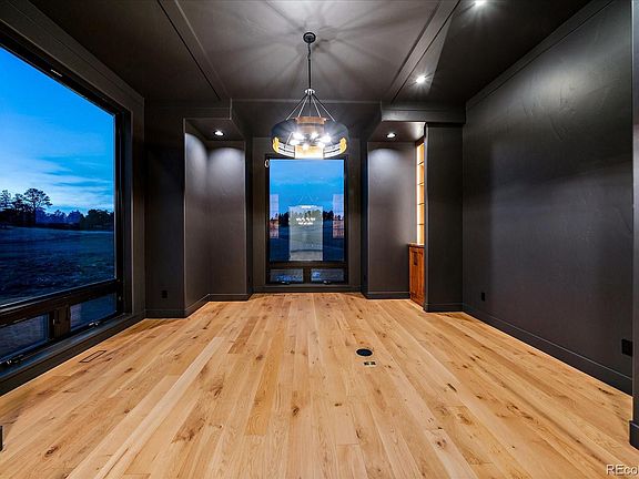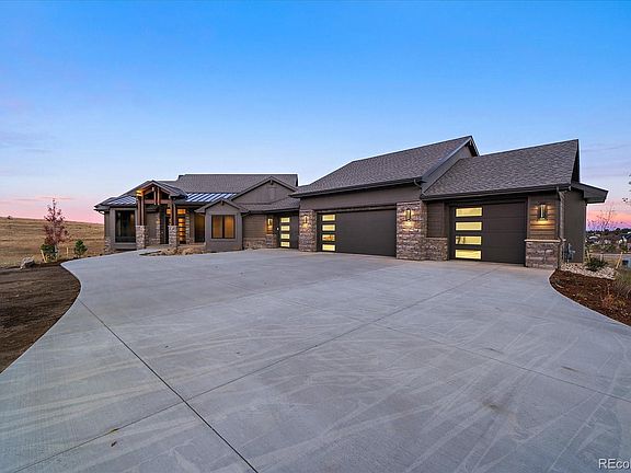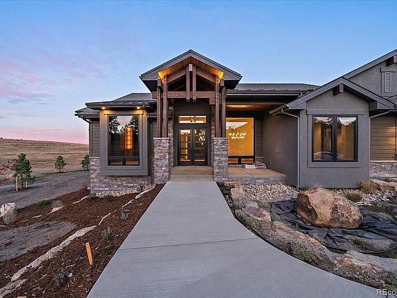 “The Leiden” by GMC Construction Co is a uniquely designed custom home, poised on acreage property, and anchored to take in the Rocky Mountain views, this gorgeous home has it all. Upon entering, homeowners are greeted by 12’ ceilings and a stunning curved staircase feature that descends to the lower level. The French door enclosed study features a custom ceiling treatment and ample natural lighting, while the open-concept flex space across the hall allows for a formal dining, library or piano room. A private hallway leads to a powder bath, a closet that is designed to be a future elevator, and the private primary suite. The primary suite provides tranquility to the homeowner - featuring French door entry, a reading nook, coffered ceilings, a fireplace feature, and a five piece spa bath with a soak tub, dual vanities, and access to the generous walk-in closet. Entering the great room, homeowners are greeted by a vaulted ceilings, a breath- taking fireplace feature, and direct access to the covered concrete deck with an exterior fireplace/firepit. The expansive open-concept kitchen that features a working kitchen island, a seated kitchen island, ample counter and cabinet space, and a dining nook - perfect for all family sizes. Tucked behind the kitchen is a sizable guest en-suite, a mudroom and large laundry room that features a dog wash - all with access to the spacious 4-car garage. Descending into the lower level, homeowners are greeted by 9' ceilings and a spacious family room, complete with walk-out access to the covered patio and a large fireplace feature. A private hallway behind the curved staircase welcomes homeowners to the 3 additional bedrooms that share a spacious Jack-and-Jill bathroom and provide ample natural lighting. A secondary laundry room and the future elevator access accent this lower level. Completing the lower level is a wet bar and billiards room.