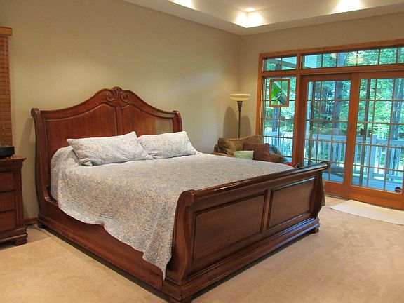 WHAT A VIEW! This exceptional 1.5 story( handmade) brick & vinyl beauty sits on a private 1 acre lot. The oversized windows show off the beautiful wooded back yard and trex-style covered deck. You will love to entertain family and friends on the spacious deck plus patio w retractable awning for all of your family get togethers! This split floor plan is perfect for a growing family or a couple. The living rm boasts a stone firepl, kitch w breakfst room that overlooks the backyd, main lvl primary suite will catch ur eye w pretty tray ceiling; the bath has been beautifully updated w oversized shower & extra storage. There is a frml dining rm & powder rm, as well as 2 more bdrms on the main with Jack & Jill bath. Bonus rm on the upper lvl w full bath is a hidden gem w skylights & room for an office; The bsmt gamerm is light and bright w walkout slider & bar area w wine fridge. Extra rm is perfect for toy or craft rm; plus another full bath & storage rm. Main lvl laundry & 3 car garage.