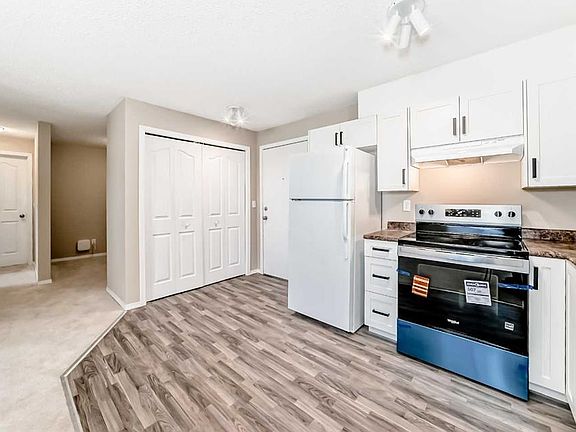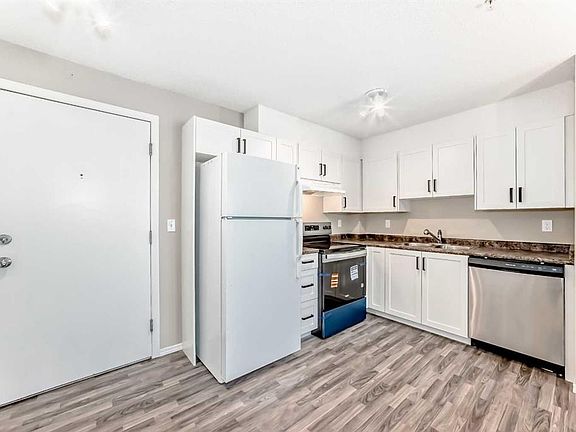 Wow!! Come see this BEAUTIFUL home!!! The kitchen includes NEW CABINETS, COUNTER TOPS, STOVE, AND DISHWASHER. Flooring is NEW VINYL. With an open plan are the adjacent large living and dining room with NEW CARPET. As well, the entire apartment has NEW PAINT THROUGHOUT. The 4 piece bathroom comes with a NEW VANITY. Spacious are the two bedrooms also having NEW CARPET. A bonus is the den with space for study or work activities. Enjoy nature in your sizeable balcony which overlooks the attractive court yard area. Convenient is the in-suite washer and dryer with storage area. Parking is a breeze in the UNDERGROUND TITLED parking stall. Close to shopping (Sobeys, Costco), schools (Evergreen School, Our Lady of the Evergreens and more), parks and transit; this home is very well located and a great value!!