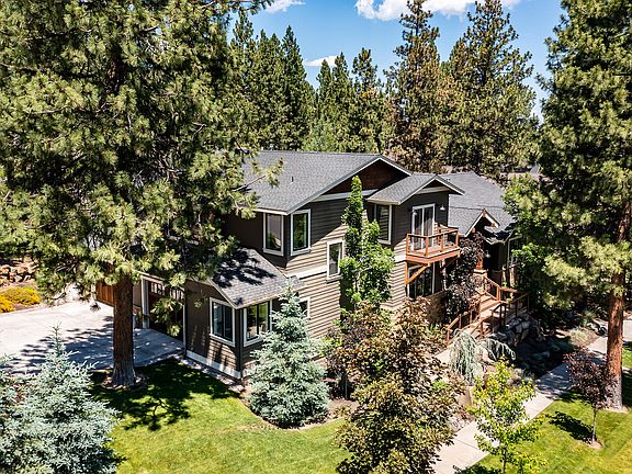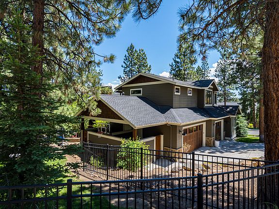 Luxury mountain modern custom home nestled among the towering Ponderosas in NW Bend's captivating Shevlin Ridge. This 2013 Tour of Homes winner recently underwent a full interior transformation to open the space and add more light. The floor plan perfectly blends progressive styling with a strong outdoor connection. Open great room floor plan with massive wood burning fireplace, soaring vaulted ceilings, and neutral wood accents. Chef's kitchen with exquisite marble island and professional grade appliances. Private main level master with elegant master bath complete with tile shower, inviting soaking tub, plus much more. Light and airy second story features a spacious bonus room with kitchenette, generous en-suite, plus much more. Perfect for entertaining with a picturesque outdoor living space complete with covered back porch, hot tub, and fenced yard. Close to trails, schools, and everything Bend has to offer. This is a truly special property and not to be missed.
