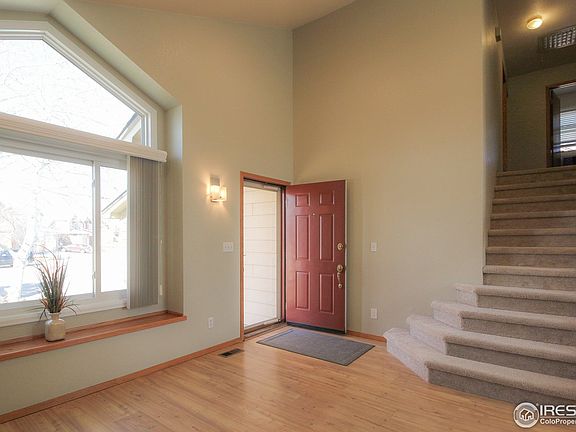 Open, bright & inviting! Updated kitchen & baths, new paint, windows, lighting, granite, carpet, etc. Vaulted ceiling; big family room w/gas fireplace, Master bed w/5-pc bath and large walk in closet. Finished bsmt w/4th bed, bath & grt rm. Relax outside- large poured concrete back patio, irrigated garden beds, fully fenced yard w/sprinkler syst, landscape lighting & mature shade trees. At the end of cul-de-sac with tons of open space in a quiet neighborhood! Near park, trails and Boyd Lake!