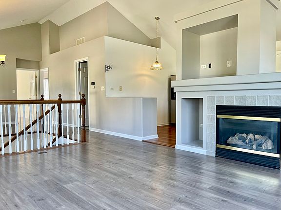 A 2 bedroom, 3 bath home with attached 2 car garage in quiet cul de sac with fantastic water and sunset view off living room and dining room; vaulted ceilings; kitchen has tall cherry wood cabinets and hardwood floor; appliances include stainless steel dishwasher, stove/refrigerator; cherry wood railings; ceramic tiles in foyers & bathrooms; upstairs den area and finished basement with lookout; walk in closet in master bedroom; 2 fireplaces.
