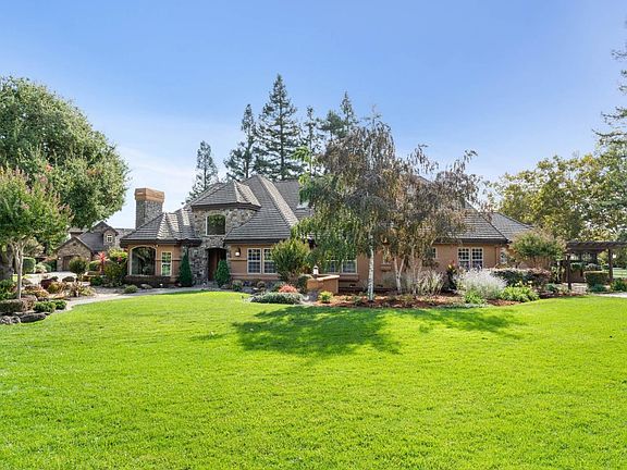 A Corporate Retreat, Family Compound, or simply a magnificent place to call home. You decide. Sited on nearly 2.5 manicured acres, it all begins with a gorgeous single story main house, a sparkling in-ground Pool, a Pool House with full bath and wet bar, an Outdoor Kitchen with grand Outdoor Fireplace, a cozy Fire Pit, built-in Pizza oven, Bocce Ball Court and not one, but two Horseshoe Pits. But that's only where this love story begins... Two guest houses, a Loft Game Room with full bar, and Garages for six (6) cars. An incredible fully fitted gym, complete with full bath and Massage Room. You'll enjoy raised garden beds, fruit trees and a charming green house. Manicured grounds with meandering paths, an owned Solar System, and plenty of room to park the RVs, which is easily accessible and out of sight. You couldn't begin to build this magnificent estate for the money, and I'll assure you, you'll not find anything like it. Isn't it time you loved where you live?