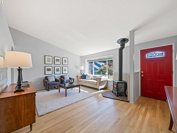 - Features: Ceiling Fan, Hardwood Floors, Vaulted Ceiling, Wood Stove