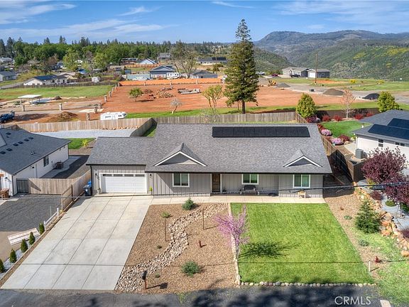 Welcome to your new home on the east side of Paradise, near the West Branch of the Feather River Canyon—where life slows down, neighbors still wave, and adventure is never far. Tucked in a solid neighborhood off Pentz Rd with wide streets and new construction all around, this nearly new home is one of the only 4-bedroom homes in Paradise priced under $500k. The smart split-bedroom floorplan gives you privacy and flexibility, featuring two primary suites—one on each end of the home—plus two more bedrooms and three full bathrooms in total. Whether you need space for guests, a home office, or hobbies, this layout delivers. Inside, tall ceilings and an open living area create a bright, inviting feel. The kitchen is a standout with its large island, full pantry, and plenty of storage. Step outside and the backyard opens up to distant views of Sawmill Peak, the perfect backdrop for a quiet morning coffee or unwinding at sunset. With solar already in place and front and back landscaping complete, this home is both efficient and move-in ready. Just a short drive takes you to Lime Saddle Marina and all the recreation the Ridge is known for. Come see why this home is not just a great value—but a rare find in Paradise.