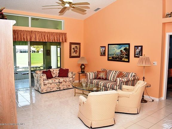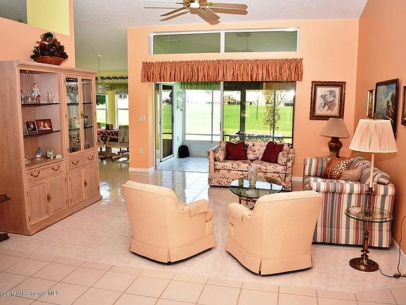 Outstanding 3 Bedroom home on the 8th tee of the Grand Pines. Watch the golfers tee off from your enclosed Lanai under heat and air. Functional split floor plan, immaculate home with vaulted ceilings and beautiful tile floors throughout. Additional cabinets in breakfast nook. Master bedroom has 2 walk-in closets. Garden tub and shower in master bath as well as a bidet. Freshly painted, clean as a whistle and shows like a model. You won't be disappointed.