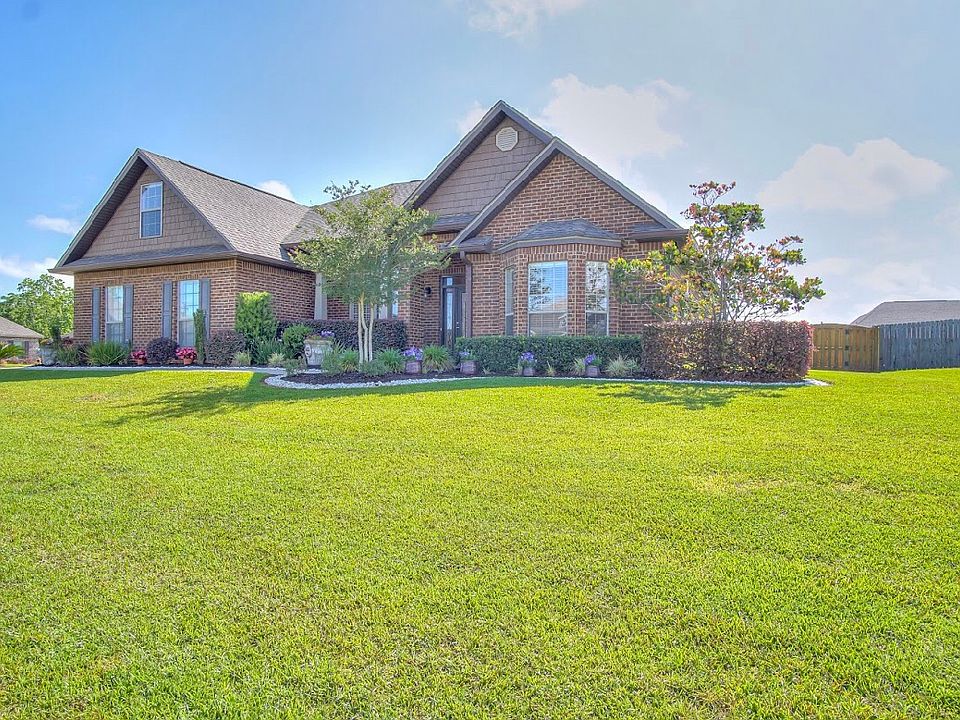 Call or Text 205-229-2244. Award winning neighborhood is perfect to raise your family in. Easy access to I-10, Fairhope schools in highly sought after Dunmore. Enjoy the gorgeous landscaping from your front and back porch of this wonderfully large corner fenced estate sized lot, voted back to back Dunmore yard of the month. Fence has a 12 ft gate for your boat and a nice large back yard. Owner has taken special pride in his home with everything done for you. Home has so many nice touches to it with added patio and gutters, side entry garage, for easy accessibility, open plan w/hop up bar in kitchen, under mount lights under kitchen cabinets, recessed lights throughout, wide rich dark plank HARDWOODS in foyer, dining room, living room, (all of which is not available in new models now), granite kitchen counter tops, tile in wet areas, plenty of crown molding throughout home, cultured marble in baths, BONUS ROOM w/closet upstairs, sitting room in the large master bedroom with door leading out to covered back porch, office/study plus 4 bedrooms, upgraded beveled glass front door. Hundreds of beautiful acres of farm land, pecan groves, and fields surrounding this neighborhood with a stocked pond for the fisherman. Don't miss this outstanding, well kept home. Immaculate, move-in ready, it is a pleasure to see. Agents Welcome. Call or Text 205-229-2244