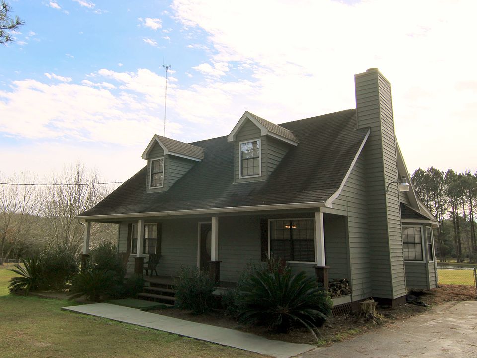 Nice Creole style home on 3 acres w/ water view & 28x40 storage building w/ power. 11x35 screened porch overlooking large stocked fishing pond. Open Floor Plan. Update Kitchen w/back splash. master on lower level. Easy access to I-10, heat pump. Fenced yard.