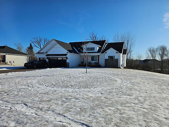 Why wait to build when you can buy a 2 year new home and close quickly! Like New Farmhouse Style Walkout Rambler with 3 bedrooms and 2 bathrooms on the main level in The Shores of Eagle Lake with Deeded access to the lake. Lots of character throughout with Quartz counters in the kitchen, accent walls in the primary bedroom, accent ceiling in the grand entryway. Open Living room, Dining Room and Kitchen. Vaulted primary suite with large walk-in closet, double vanity, tub and separate tile shower, 3 bedrooms on 1 level and room to add more in the unfinished walk-out lower level. Add equity by finishing off the basement with a bedroom, bathroom and family room. Main floor laundry. No houses directly behind you with lots of trees for privacy. Over-sized 3 car garage with room for a workshop or longer boat. This home shows like new. Don't miss this great opportunity!