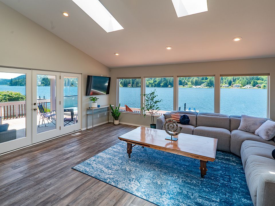 This home has been fully remodeled! With a large new dock, hot tub, outdoor seating and fire table. You will find stunning views from nearly every space in the home. Three bedrooms, 2 1/2 bath, plus game room and kayaks. The home is fully furnished, including all the kitchen bathroom and living essentials. The home is available for a mid Term Rental Match Match 1st to June 31st This is a short to mid Term Rental and is only available until June 31, 2025