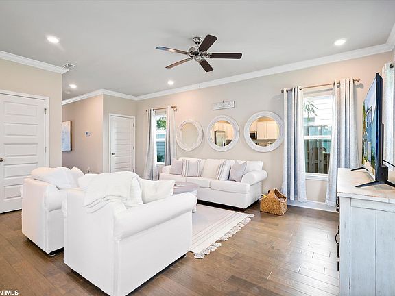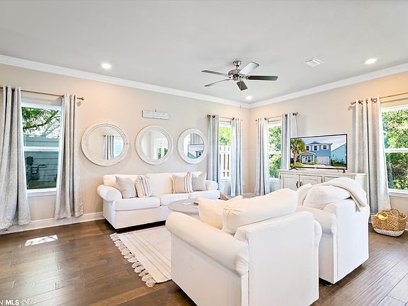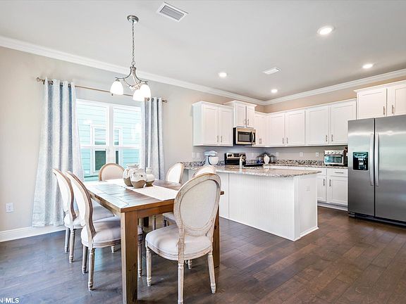 This beautiful DR Horton Norfolk Plan features granite counter tops in kitchen and baths, hardwood floors, stainless steel appliances, gas range for cooking, crown molding, beautiful upgraded painted cabinets with soft close features, and covered porches. Additional features include hurricane fabric shield for exterior windows, and a fully sodded yard with landscaping. This fabulous subdivision offers a community pool with sliding board and lazy river. This community is located next to The Wharf which is convenient to great restaurants and retail shopping, the Foley Beach Expressway, and just minutes to the white sandy beaches of Orange Beach. This home is built gold fortified.