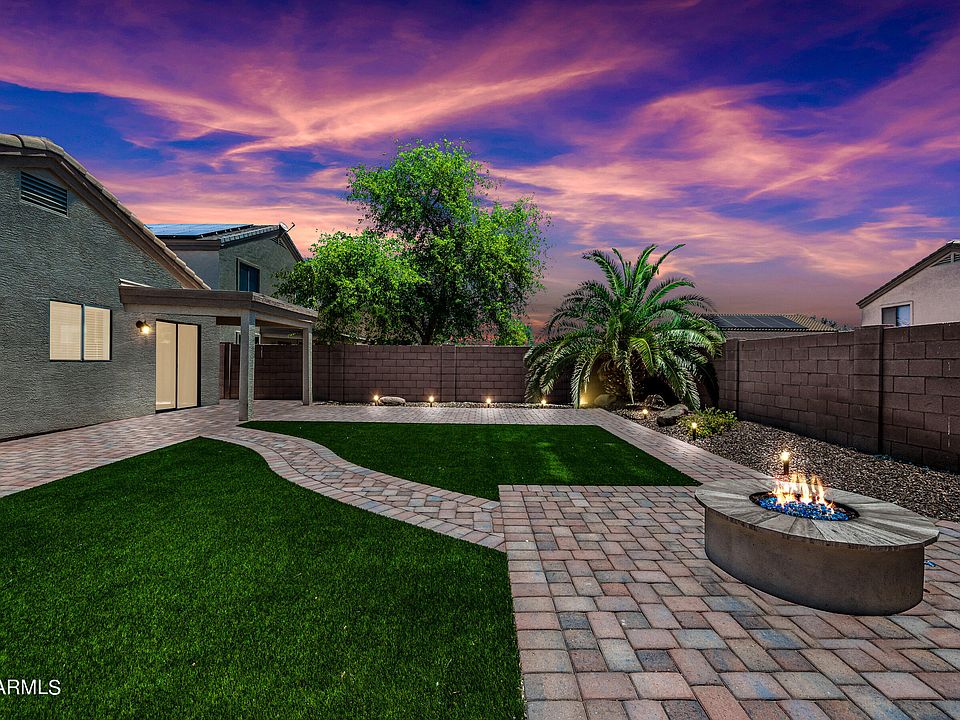 Welcome to your cozy oasis in Sundance, Buckeye, AZ! This charming 3-bedroom, 2-bathroom home boasts 1065 sq ft of comfortable living space, perfect for your family's needs. Built in 2004, this home offers modern amenities combined with classic charm. As you enter, you'll be greeted by a bright and airy living space with a north-south exposure, allowing for plenty of natural light throughout the day. The heart of the home features a beautifully renovated kitchen, complete with two-tone refinished cabinets that provide ample storage, elegant quartz countertops, and newer appliances, making meal preparation a breeze. The entire home is adorned with stylish laminate flooring, offering both durability and easy maintenance, with no carpet in sight. Step outside to your own private retreat... where you'll find artificial turf in both the front and back yards, ensuring lush greenery year-round without the hassle of mowing.Entertain guests or relax with family around the cozy propane firepit, perfect for cool evenings under the stars. Listen to the soothing sounds of a water feature, adding a touch of tranquility to your outdoor space. The backyard is finished with pavers, creating a low-maintenance yet inviting atmosphere for outdoor gatherings.