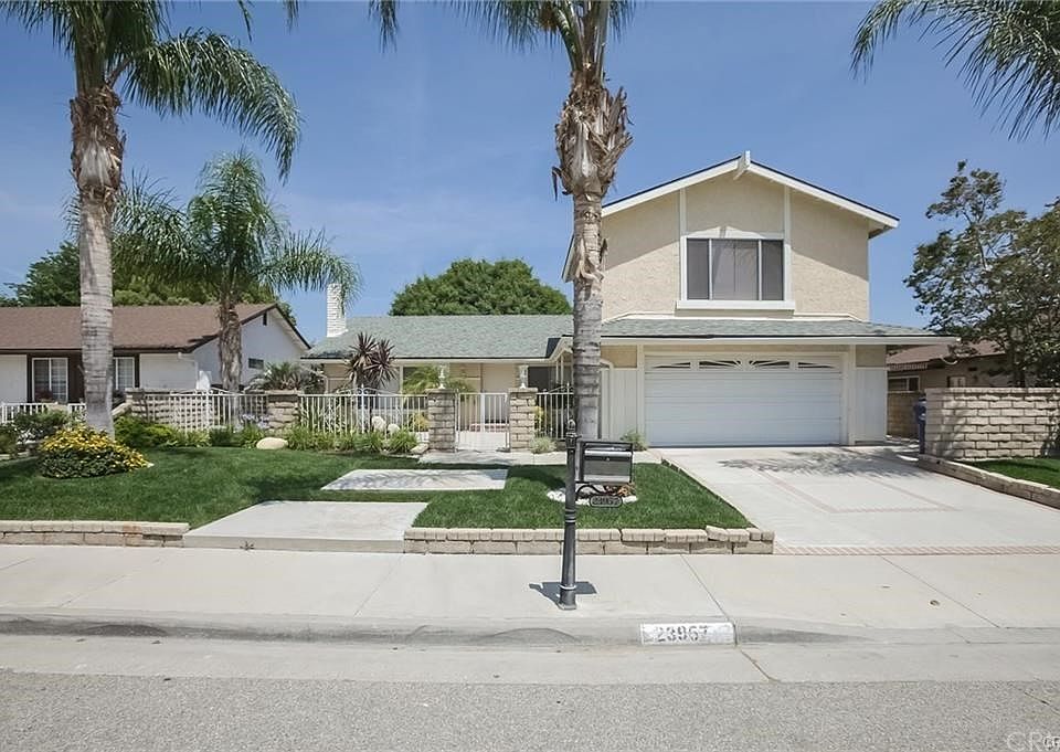 Centrally located in a desirable area of Valencia, this charming home features 4 bedrooms, including 2 master suites, 3 bathrooms, and over 2,000 sq/ft of living space! Walk into the light & bright living room that includes a wood burning fireplace and enjoy entertaining family and friends in the spacious den/family room. The updated kitchen features granite counters, brand-new stainless steel appliances, and large windows with a view of the backyard and sparkling pool. Additional amenities include: newer plumbing, central air/heat, new flooring throughout, recessed LED lighting, two-car attached garage with direct access to the house, close proximity to parks, shopping, restaurants, schools and health care facilities. This home and its wonderful amenities is waiting just for YOU!
