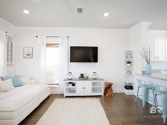Excellent opportunity in a great location in Orange Beach! This 3 bed, 2.5 bath cottage is the perfect blend of relaxed elegance and coastal charm. This smart home is gold fortified and located on a corner lot with additional added parking for you and your guests and is just steps from the neighborhood resort style pool. The home features a gas range, dual thermostats, and a private, fenced-in backyard. Yard has been beautifully maintained with a newer irrigation system. Conveniently located across the street from the new Middle/High School and just moments away from the beach, shopping, summer concerts and fine dining. Schedule your private showing today! Home is being sold furnished with the exception of a few personal items. Professional interior photos coming soon! Buyer to verify all information during due diligence.